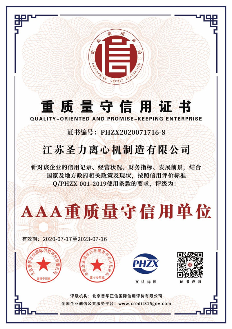 江蘇圣力離心機制造有限公司是國內(nèi)分離機械行業(yè)中主要的離心機生產(chǎn)企業(yè),對離心機的研究、設計、制造有多年的歷史,擁有齊全的設備、完善的檢測手段。公司已通過IS09000國際質(zhì)量體系認證、ISO14001環(huán)境管理體系認證、ISO45001:2018職業(yè)健康安全管理體系認證和CE認證,是江蘇省高新技術企業(yè),曾榮獲國家和地方多項榮譽稱號。
